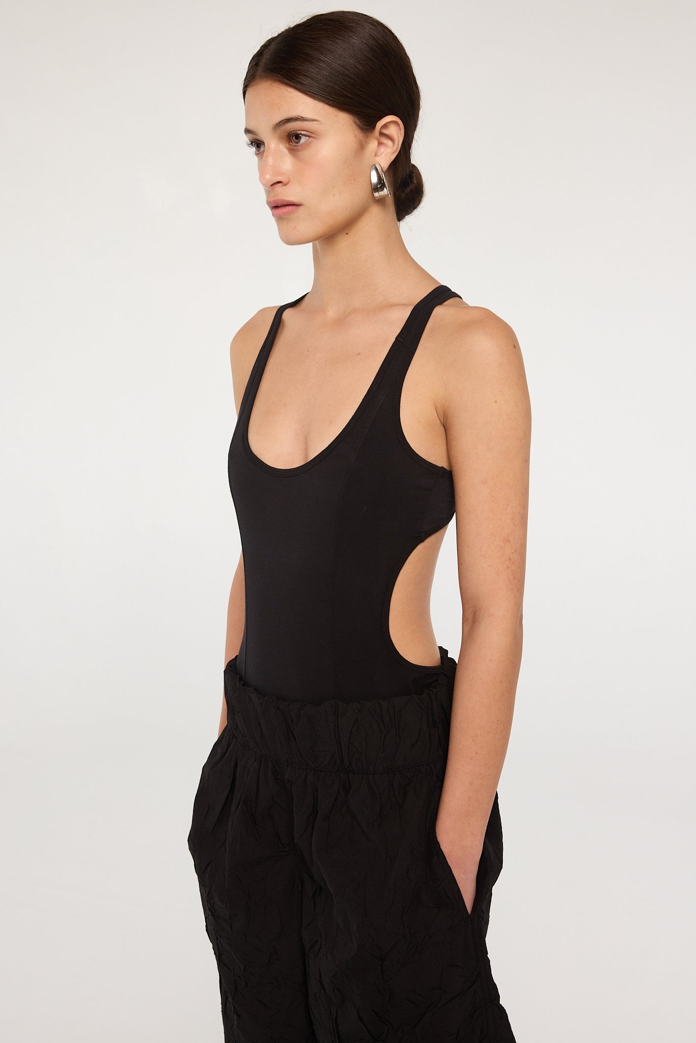 The Lana is bodysuit ideal for year-round layering. It is crafted from our signature micromodal stretch-jersey with a deep scoop neck, a cut-out back that dips on the sides of the waist, coverstitch detailing at the front seams, and bikini coverage. Double-lined to minimize sheerness. Slip it on with a maxi skirt and sandals for an effortlessly refined daytime look or wear under a blazer and trousers.