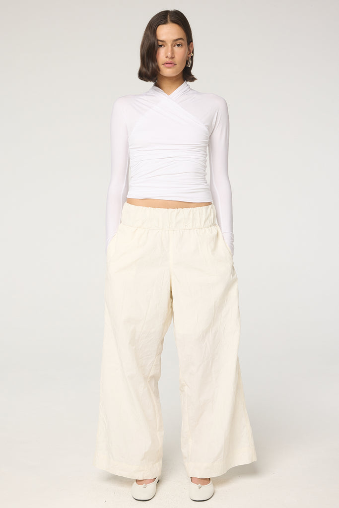 The Felix was inspired by our necessity for elegance, comfort, and versatility. It’s cut from a luxuriously soft micro-Modal jersey and features a fitted bodice with ruching at the waist, a high neckline, and is finished with merrow stitching down the back seam and hem. Wear it as a streamlined base to boxy tailoring or layered over a sports bra after a workout.