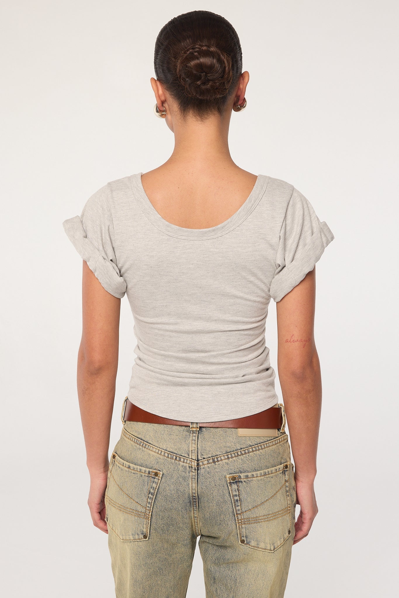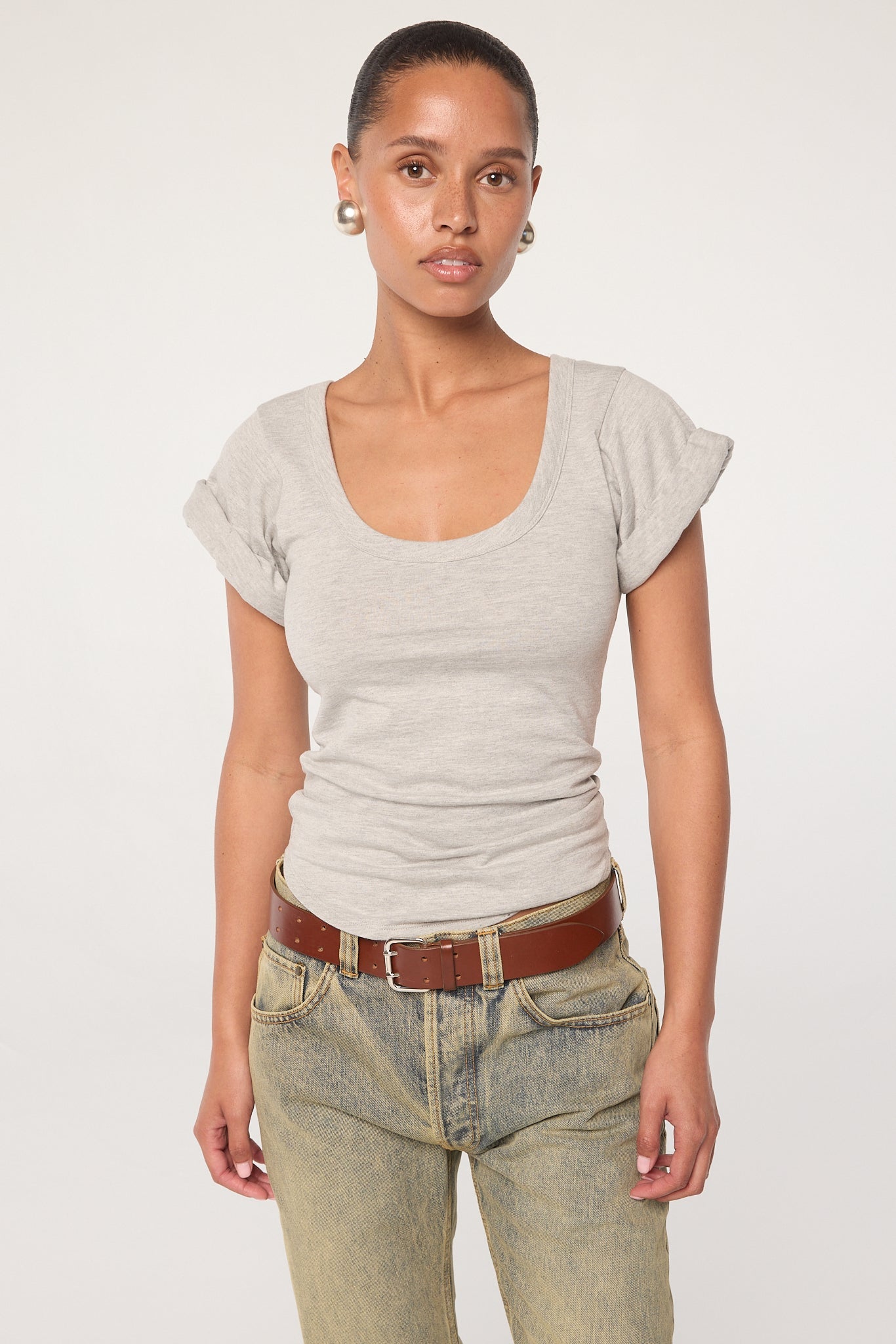 Heather Grey Roll Sleeve Scoop Neck T-Shirt