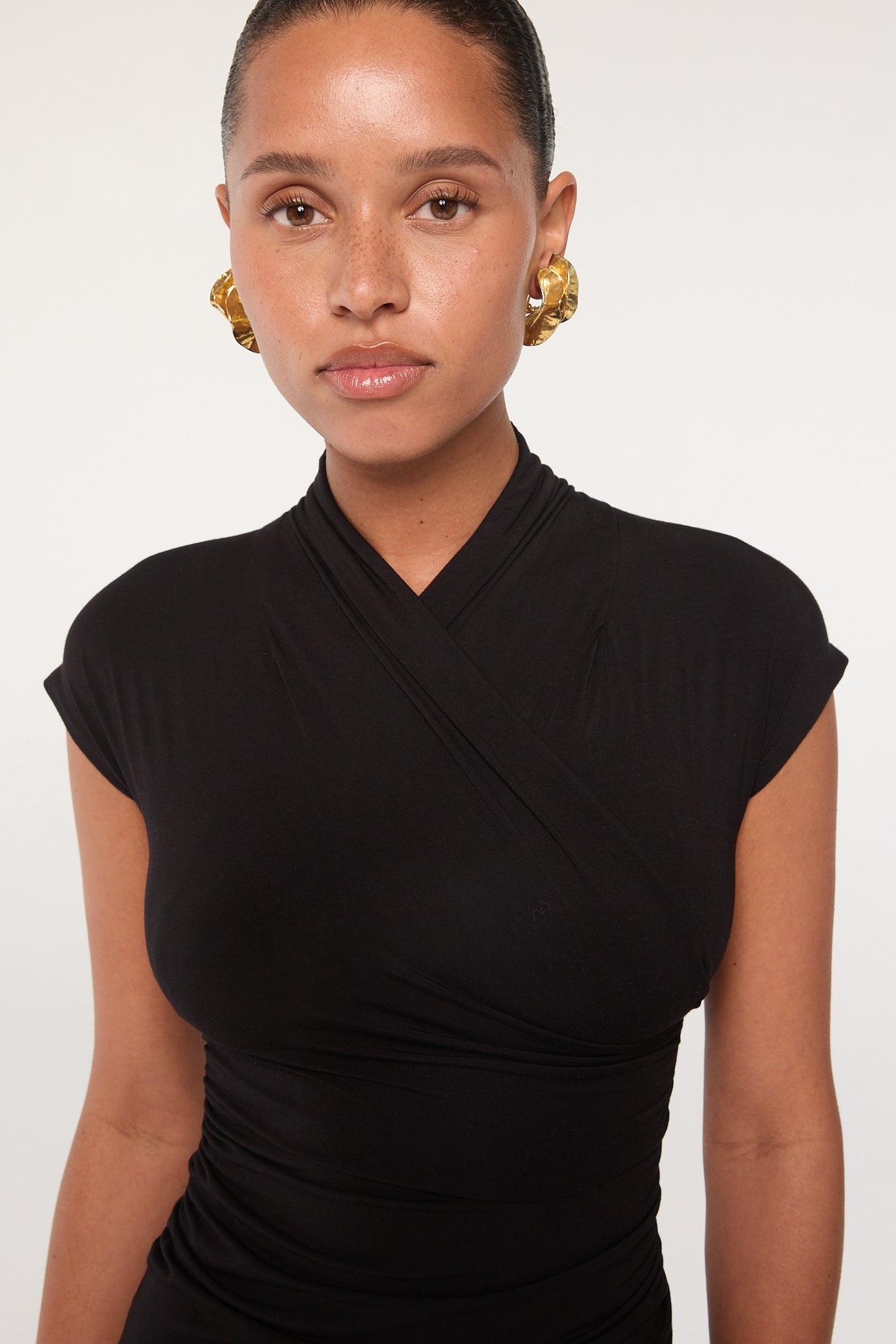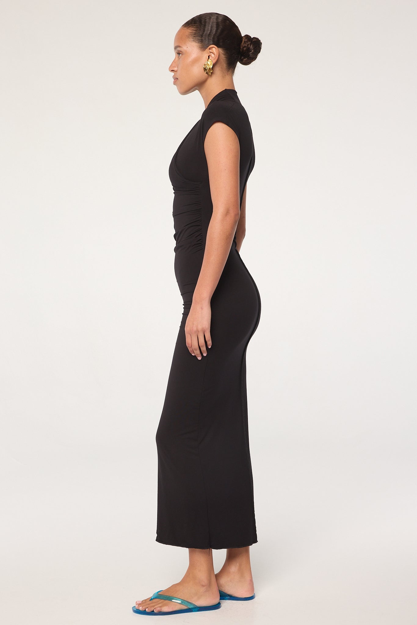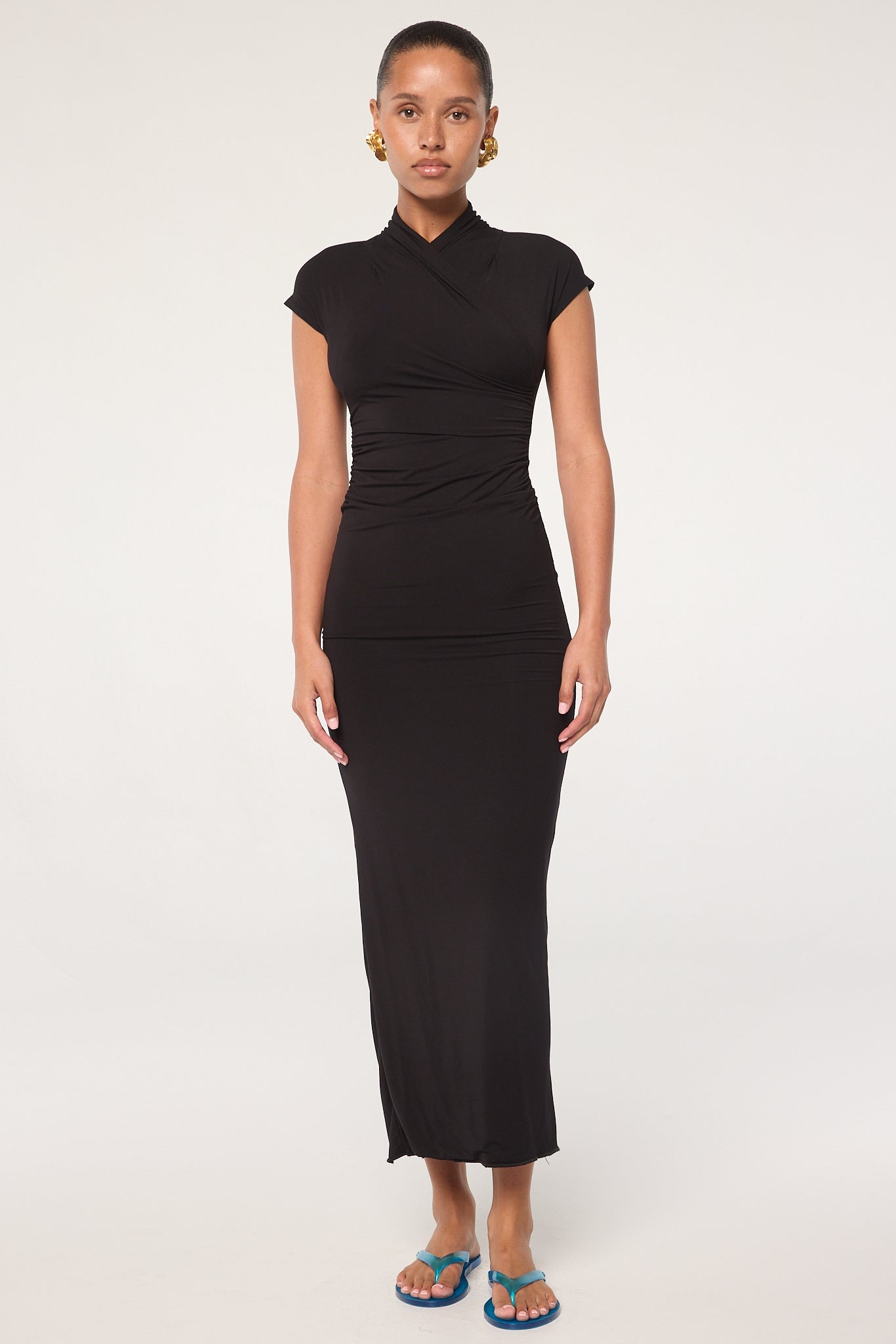 Black Wrap Neck Maxi Dress