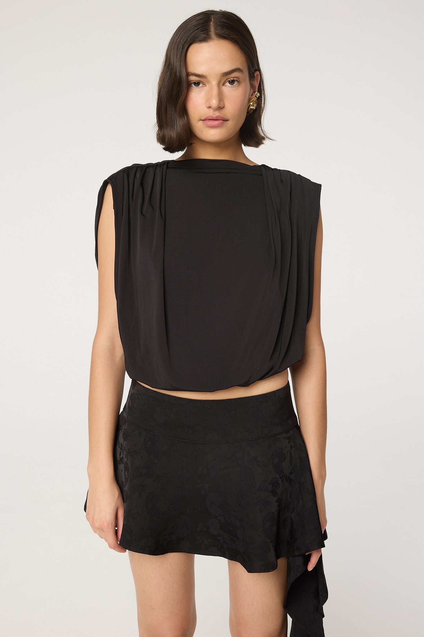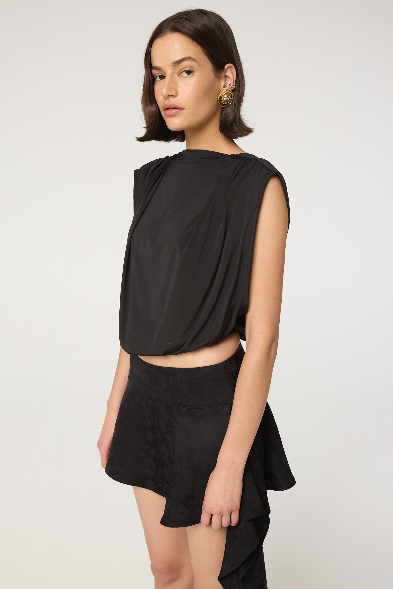 Cut from a stretch Viscose selected for its slight sheen and handfeel, the Bobi top is an elevated essential. Folded pleats at the shoulders and a low cut back create an elegant draped shape. Pair with the Dom mini skirt or with a suede belt and worn denim for a juxtaposed look.